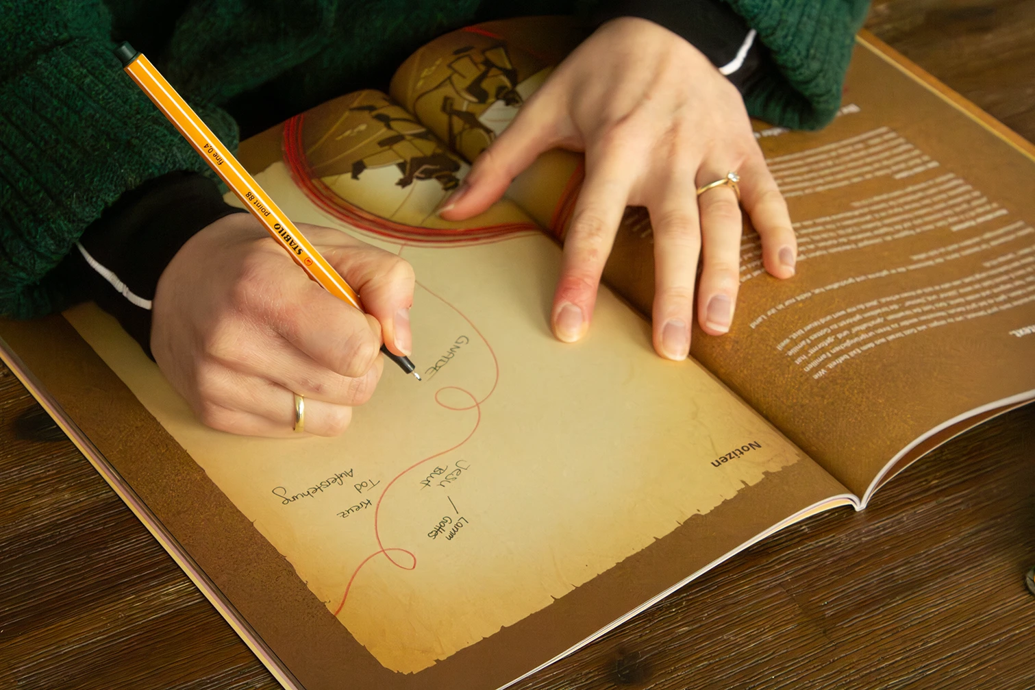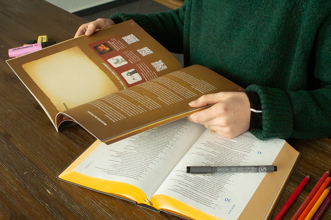 Außerdem kannst du das Begleitheft zusammen mit dem Begleitposter bestellen. Auf dem Poster ist Platz, um zu jeder Session die wichtigsten Gedanken festzuhalten und euren Fortschritt zu tracken. Das Poster kommt im DIN A2 Format und liegt dem Heft als gefalteter Einlieger bei.