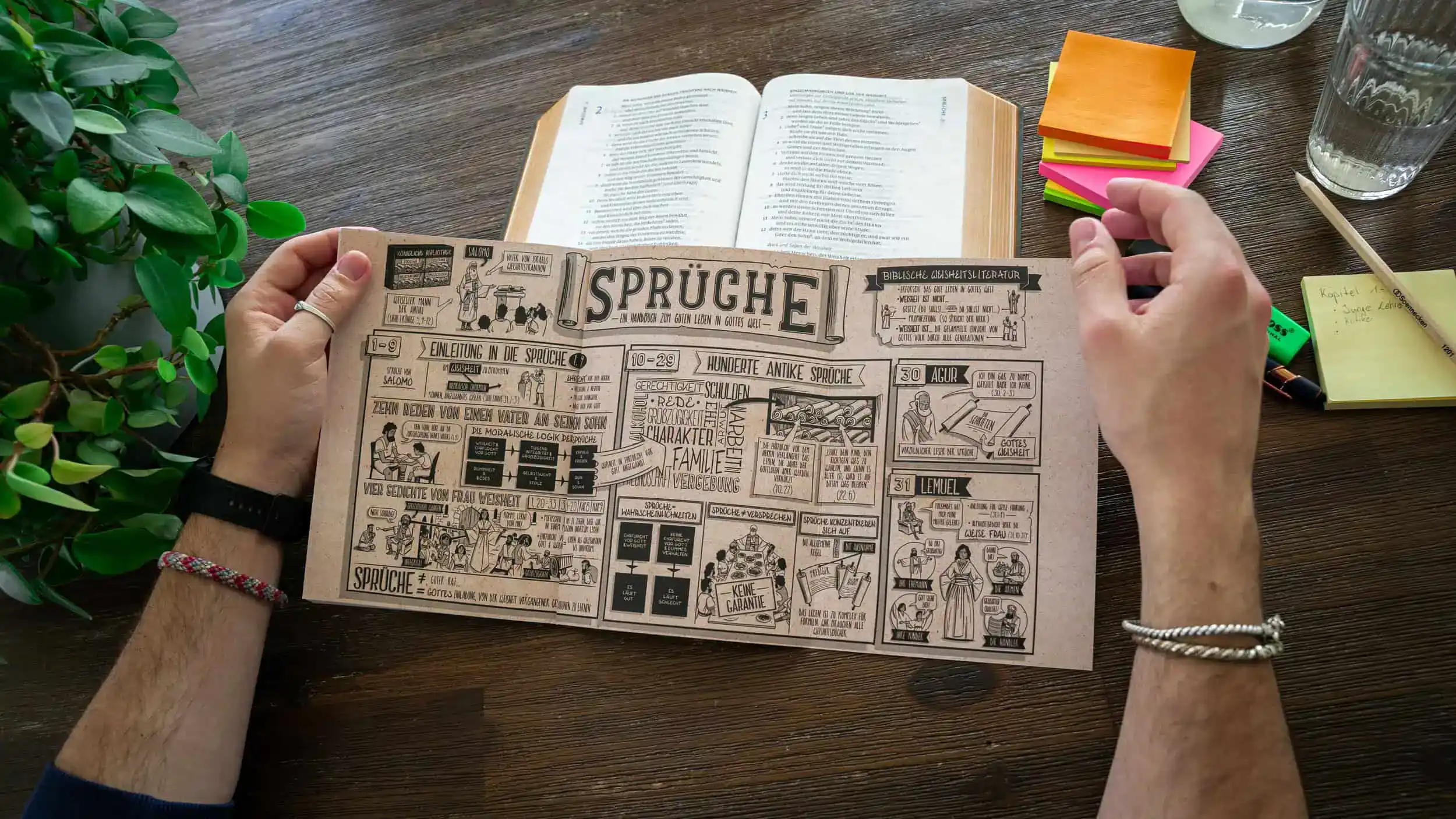 - Reflexionsfragen: Passend zu den Buchvideos haben wir für dich (und deine Kleingruppe) Fragen entwickelt, die zum Reflektieren über das Erlebte und über die Kerngedanken des Weisheitsbuchs Sprüche einladen.