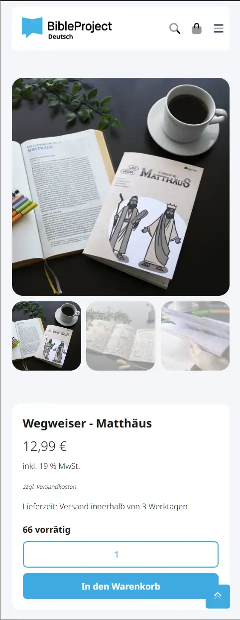 Der digitale Wegweiser steht kostenfrei zur Verfügung. Durch die Nutzung des Wegweisers entstehen uns (BibleProject – Deutsch) jedoch regelmäßige Kosten. Gerne freuen wir uns über deine – auch regelmäßige – Unterstützung. Die gedruckte Variante geben wir zum Selbstkostenpreis weiter.